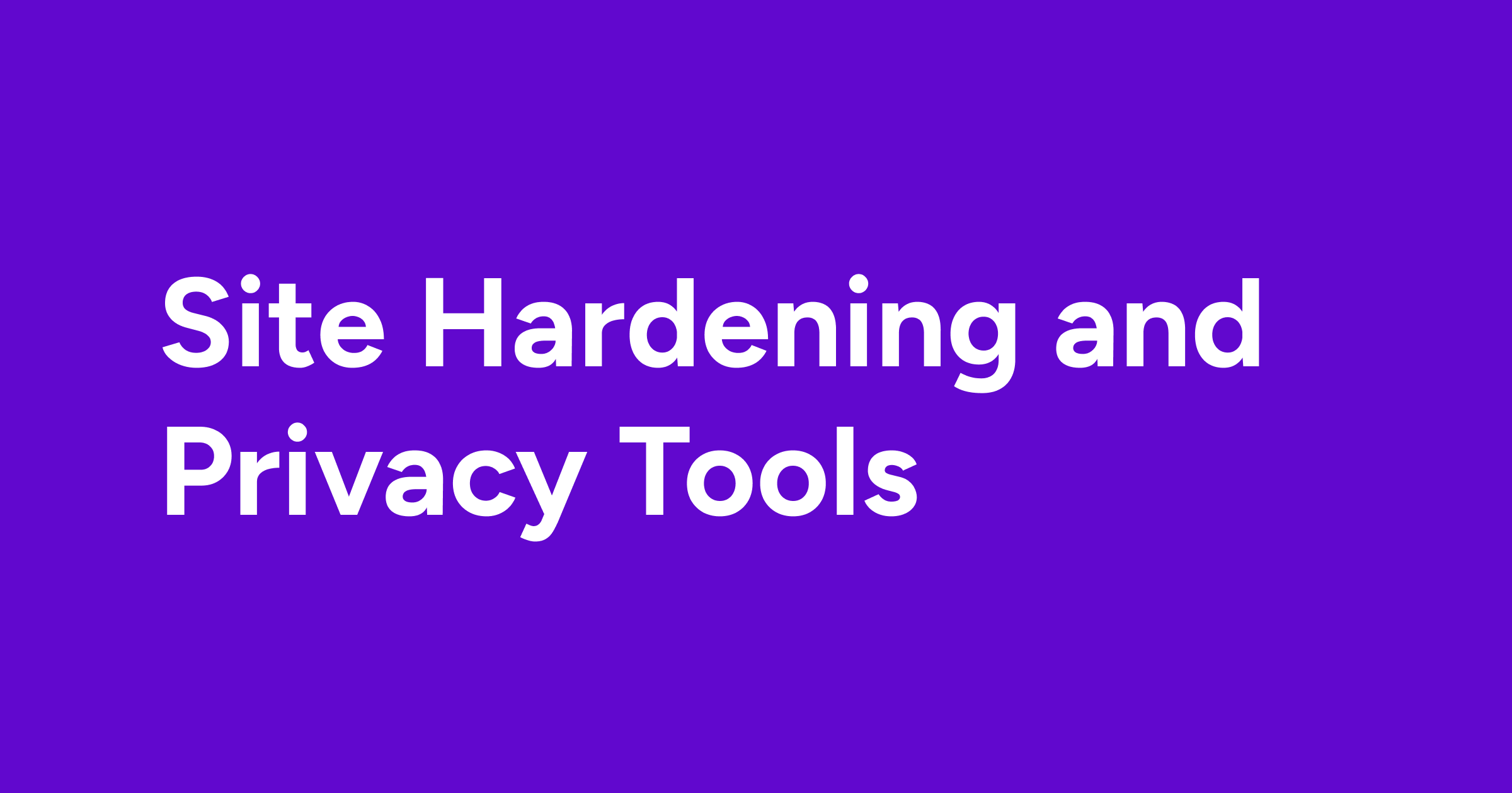Site Hardening and Privacy Tools